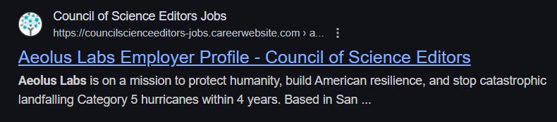 Aeolus Labs aims to "stop catastrophic landfalling Category 5 hurricanes within 4 years!"